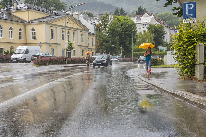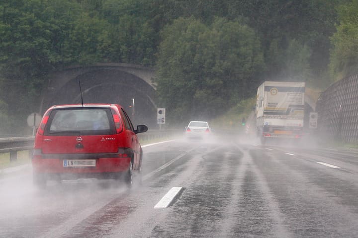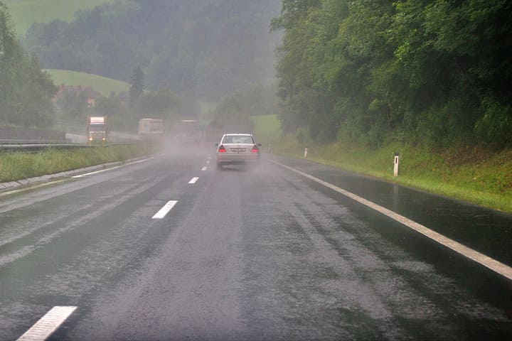 Sie fahren hier mit etwa 80 km/h. Warum können Sie davon ausgehen, dass keine extreme Aquaplaninggefahr besteht?