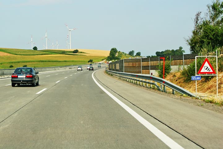 Sie fahren auf dieser Autobahn mit etwa 110 km/h. Mit welchen besonderen Gefahren müssen Sie rechnen?