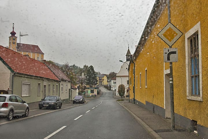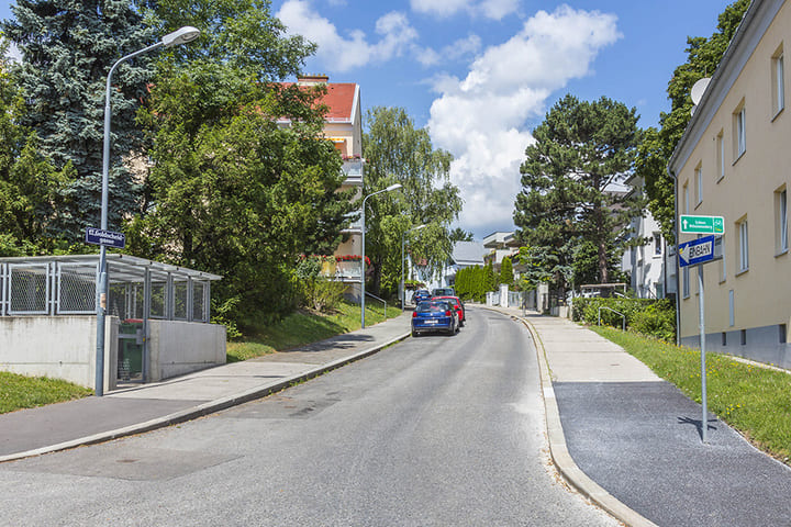 Sie befinden sich im Ortsgebiet. Dürfen Sie auf dieser Fahrbahn zum linken Fahrbahnrand zufahren, um zu halten? Warum?