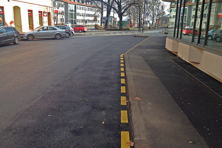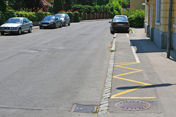 Wie lang dürfen Sie Ihr Fahrzeug entlang der gelben Bodenmarkierung höchstens abstellen?