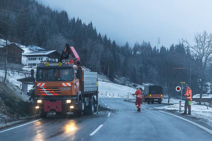 Der Straßenarbeiter hält die Signalscheibe mit der roten Seite zu Ihnen. Wie werden Sie sich hier verhalten?