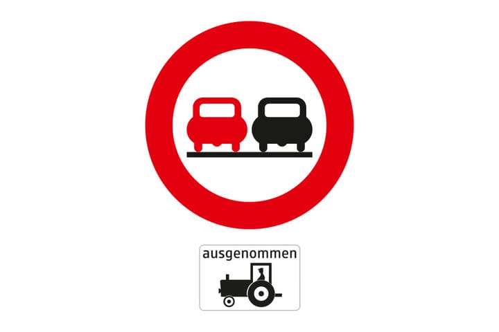 Vor Ihnen fährt ein Traktor. Dürfen Sie diesen Traktor nach diesen beiden Verkehrszeichen überholen? Warum?