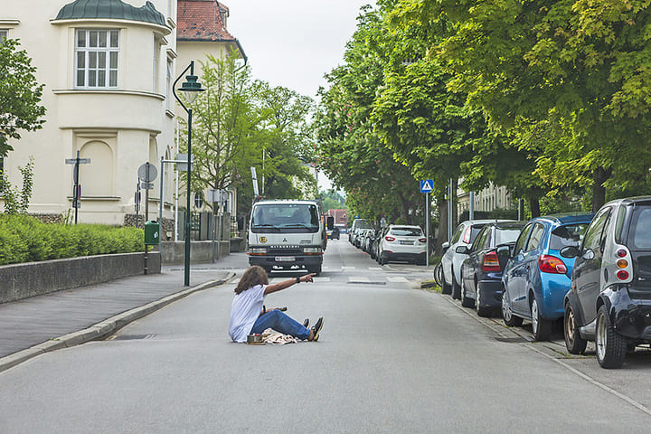 Sie fahren hier mit etwa 30 km/h. Wie verhalten Sie sich?