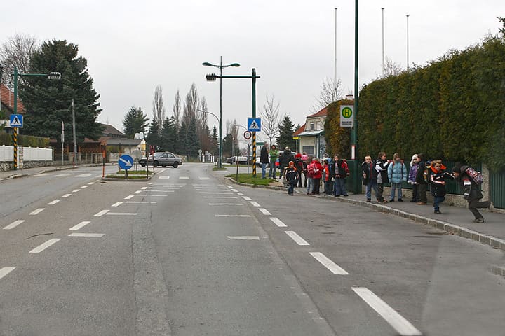 Sie fahren hier mit etwa 30 km/h. Warum müssen Sie hier anhalten?