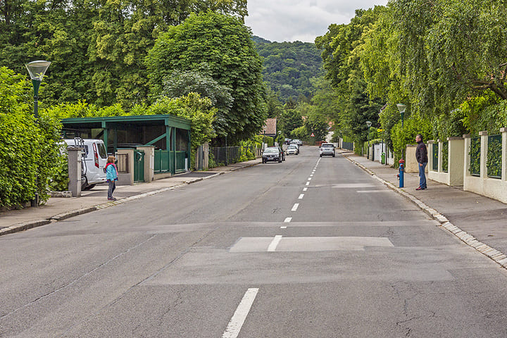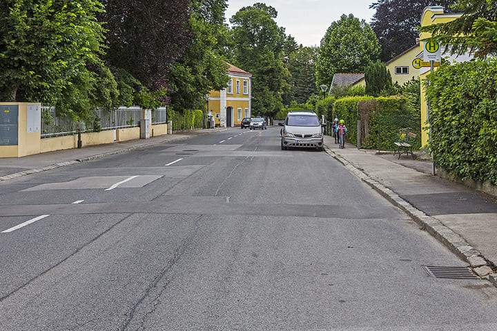 Sie fahren hier mit etwa 30 km/h. Wie verhalten Sie sich?