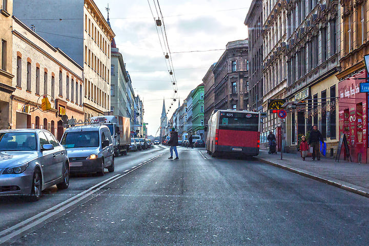 Sie wollen hier am Bus vorbeifahren. Wohin müssen Sie schauen?