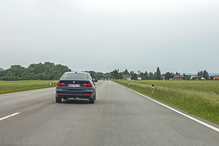 Der PKW fährt mit ca. 60 km/h. Wie verhalten Sie sich?