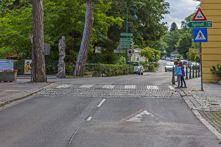Sie haben vor dem Schutzweg angehalten. Was sollten Sie beachten, wenn Sie den Kindern das sichere Überqueren des Schutzweges ermöglichen wollen?