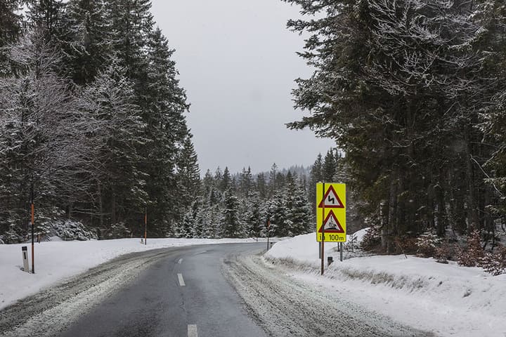 Müssen Sie hier soweit rechts fahren, dass Sie auch den schneebedeckten Teil der Fahrbahn benützen?