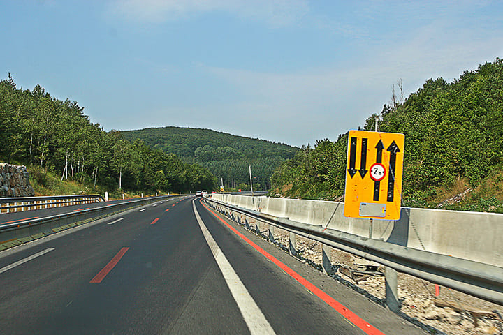 Sie wollen hier von der Autobahn abfahren. Warum sollten Sie erst abbremsen, wenn Sie sich am Verzögerungsstreifen eingeordnet haben?