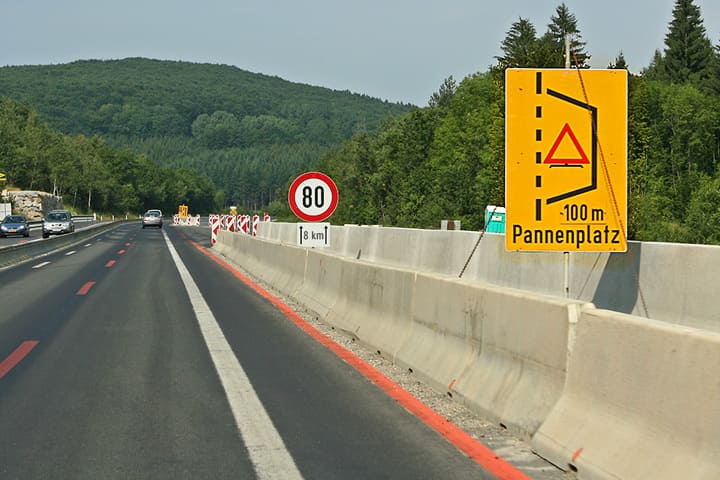 Sie fahren hier mit 80 km/h und bemerken, dass Ihr Fahrzeug eine Panne hat. Wie verhalten Sie sich?